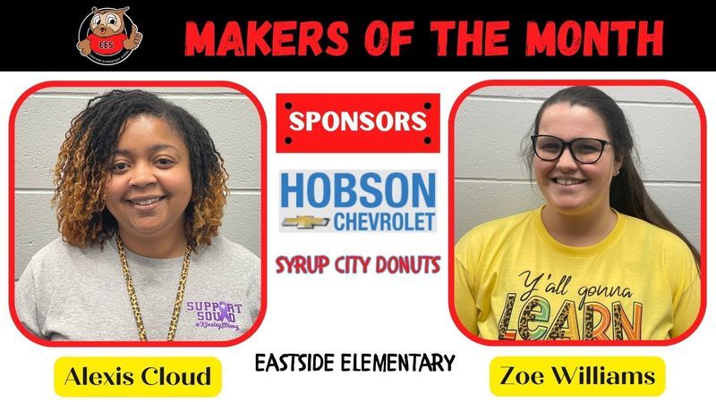 Each month two employees from each school are chosen to be recognized as Grady County Schools' Makers of the Month. For the month of April, selected employees received gifts from Hobson Chevrolet and Syrup City Donuts of Cairo. Congratulations Makers of the Month and a big THANK YOU to our sponsors!